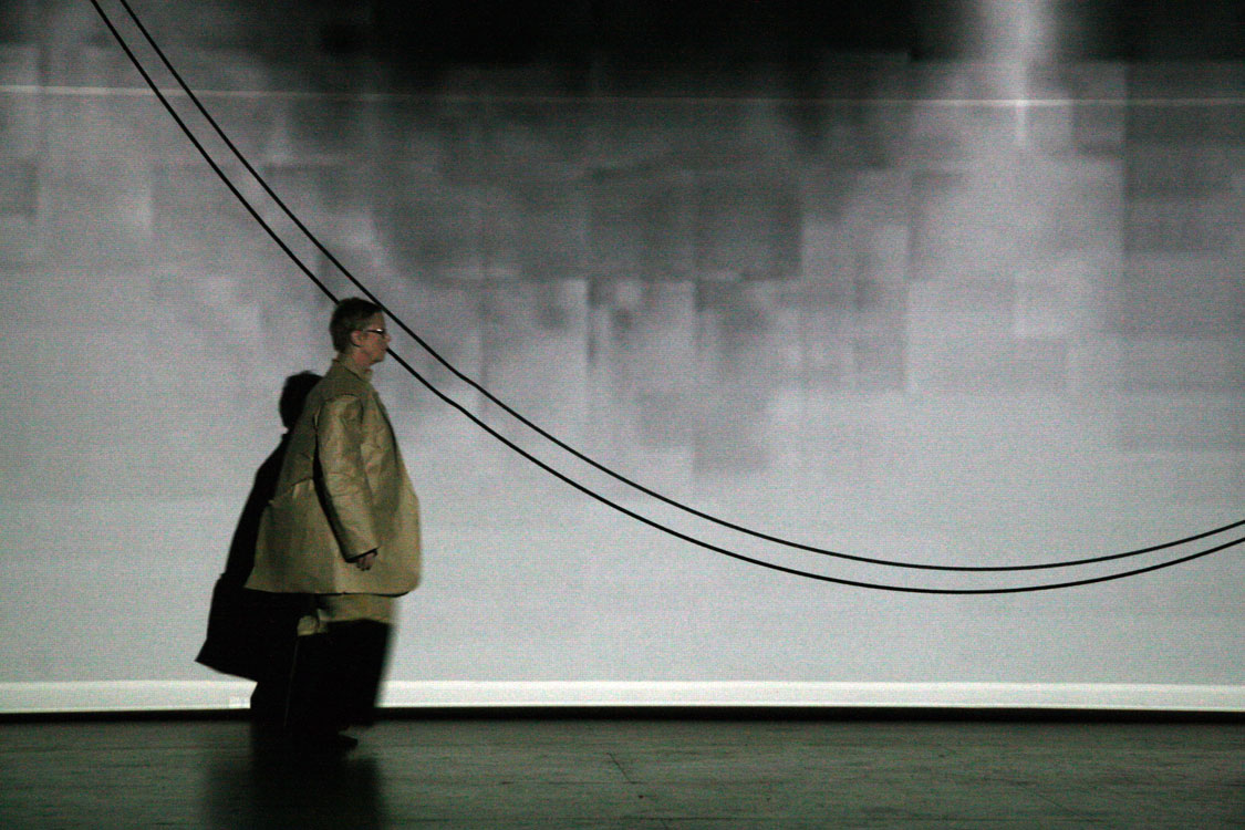 GRAY was inspired in part by Johns’ 2002-3 painting Near the Lagoon. With GRAY I explored theatrical parallels to Johns’ use of gray as surface, subject, and cover.