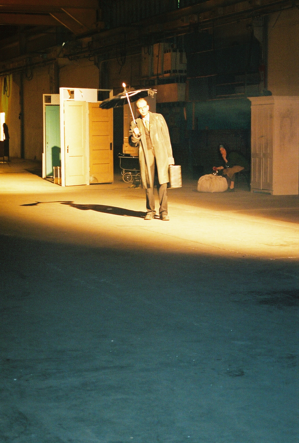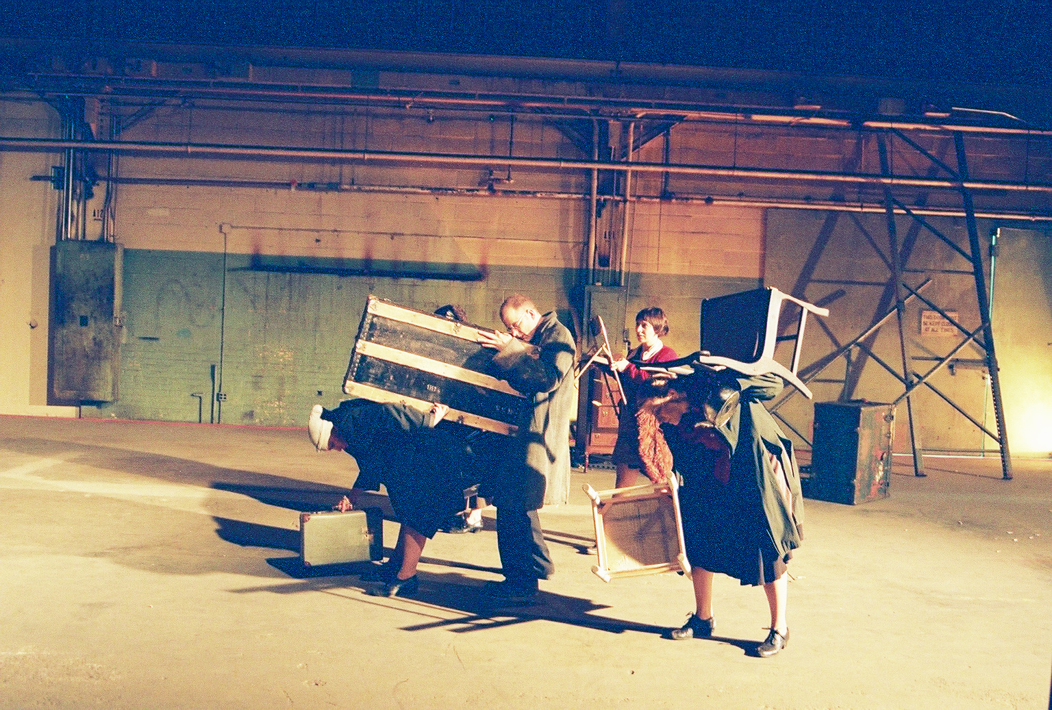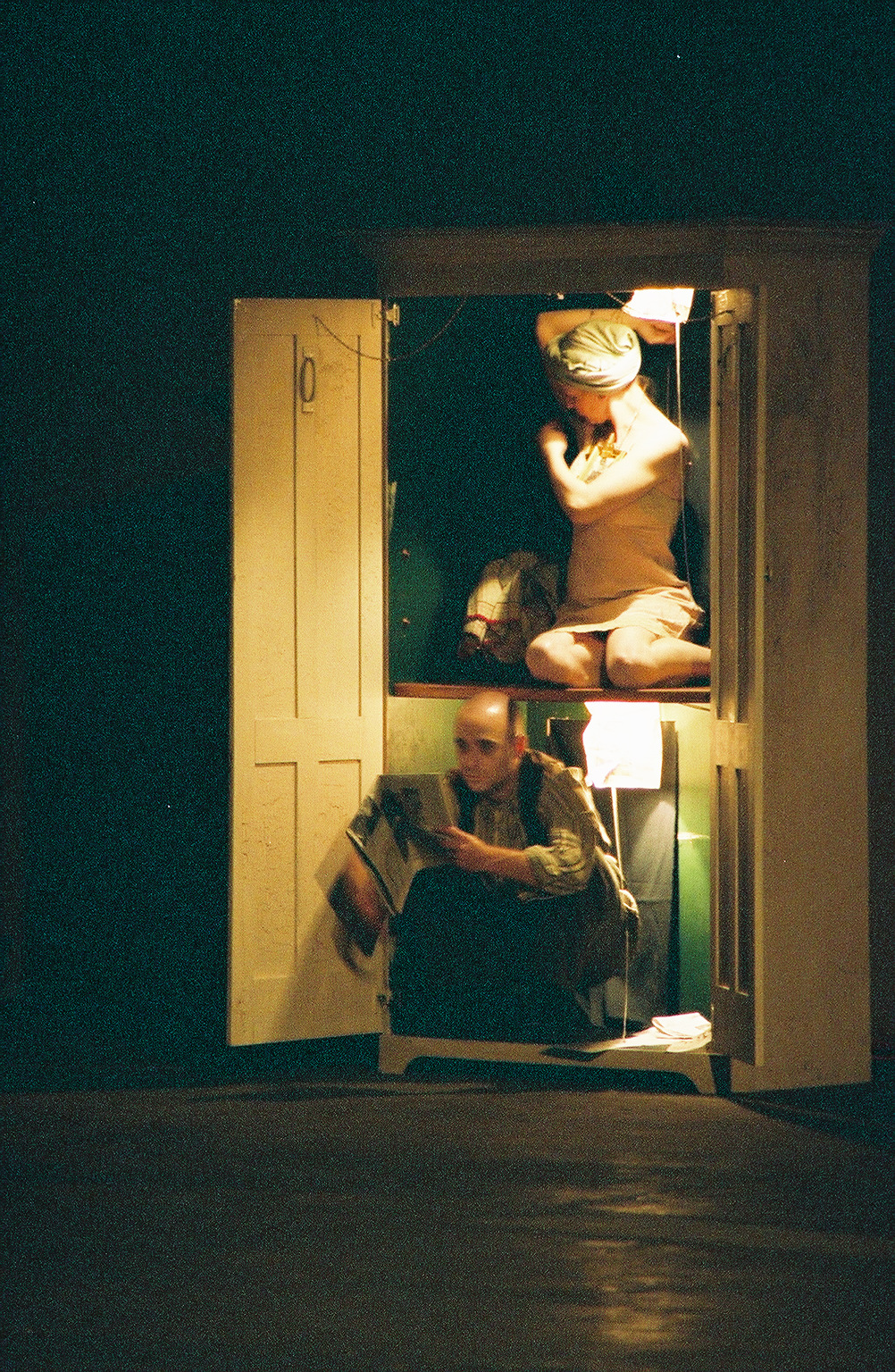 Set in a large vacant warehouse, The Orange Grove was a story of a family’s migration told through the incomplete memories of a young girl. The characters made their homes in wardrobes, suitcases and cupboards. A pyromaniac set objects on fire, and oranges were stolen from a forbidden orchard.